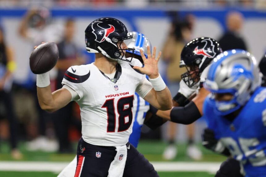 Graham Mertz (left) of the Houston Texans plays against the Detroit Lions during a preseason game at Ford Field on August 23, 2025 in Detroit, Michigan. (Photo: AFP)