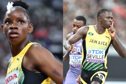Montego Bay United's Nashordo Gibbs (left) dribbles away from Portmore United's Ronaldo Robinson in their JPL second round game at Jarrett Park on Sunday, January 18, 2026. The…