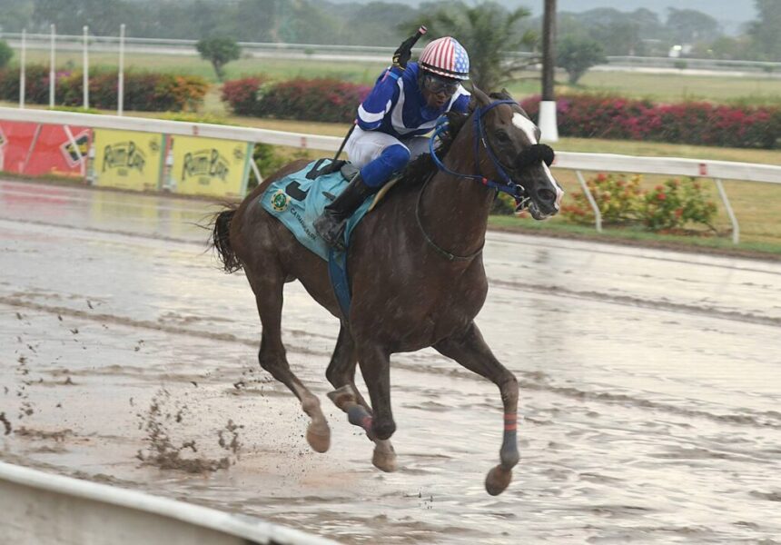 Tapit Good (Shaheem Gordon) winning over the five-furlong (1,000m) straight on Thursday, January 1, 2026. (Photo: Karl Mclarty)