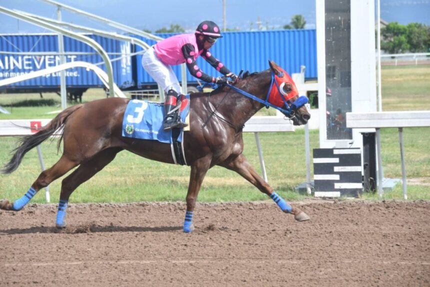 Hickory Slim (Dick Cardenas) wins the third race, giving trainer Donovan Phillipps his 100th career winner at Caymanas Park on Sunday. Garfield Robinson
