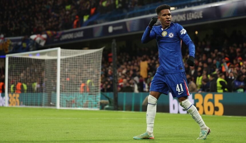 Chelsea’s Brazilian midfielder #41 Estevao celebrates after scoring their second goal during the UEFA Champions League league-phase football match between Chelsea and Barcelona at Stamford Bridge in London on November 25, 2025. (Photo: AFP)