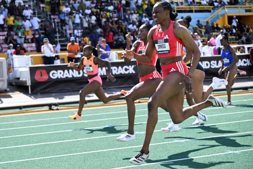 Jamaica’s Danielle Williams races to win the Women’s 100-metre during Grand Slam Track at the National Stadium on Sunday, April 6. (Photo: AFP)