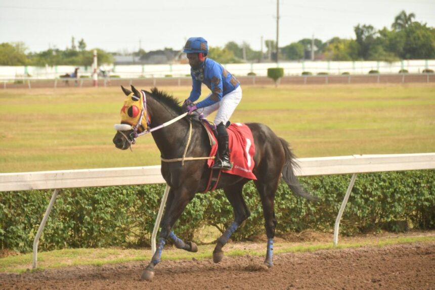 Christopher Mamdeen guides Blind Vengence to the winners’ enclosure after winning the third race. Garfield Robinson