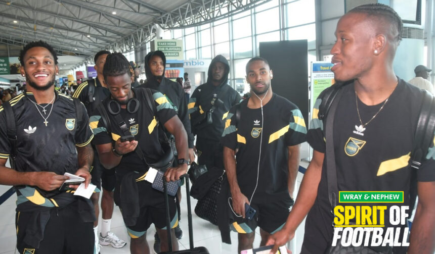 Brentford wingback Rico Henry (second right) with other members of the Reggae Boyz squad ahead of their departure for a World Cup qualifier in Trinidad and Tobago on Tuesday, November 11, 2025. (Photo: Garfield Robinson)