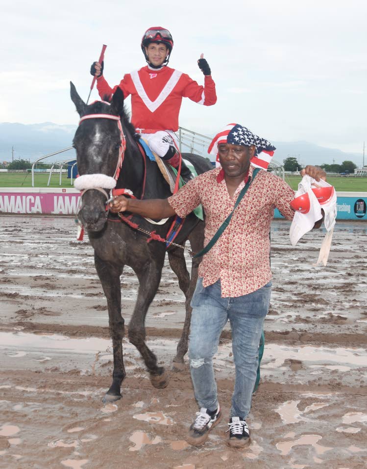 Supernatural Power (Dick Cardenas) is led into the winners’ enclosure after winning The Viceroy Trophy feature race on Monday, October 20, 2025. (Photo: Karl Mclarty)