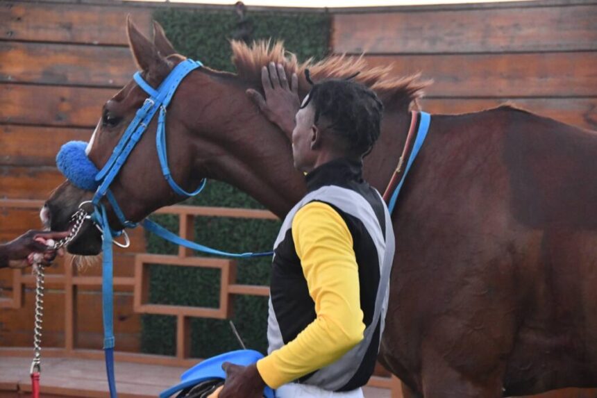 Jockey Omar Walker congratulates We Jammin for a brilliant run in the $4 million Wayne DaCosta OD Jamaica Two-Year-Old Stakes on Friday, December 26, 2025. (Photo: Naphtali Junior)